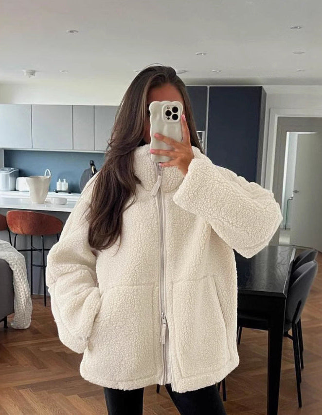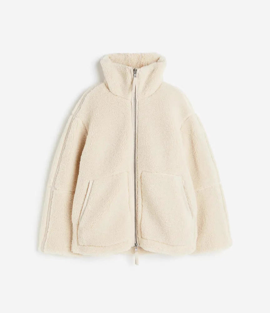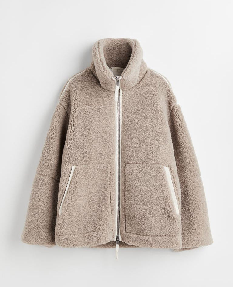 Die Teddyjacke besteht aus kuscheligem Kunstfell in mittlerer Dicke. Ihr lockerer Schnitt und das lässige Design machen sie zum perfekten Begleiter für kühle Tage im Herbst und Winter.