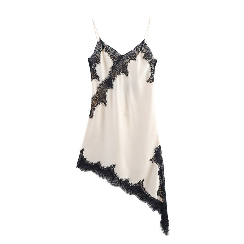 Elegantes Seidenkleid mit feiner Spitzenverzierung. Der zarte Stoff verleiht einen luxuriösen Glanz, während die romantische Spitze für einen femininen und stilvollen Akzent sorgt. Perfekt für besondere Anlässe oder elegante Abende.